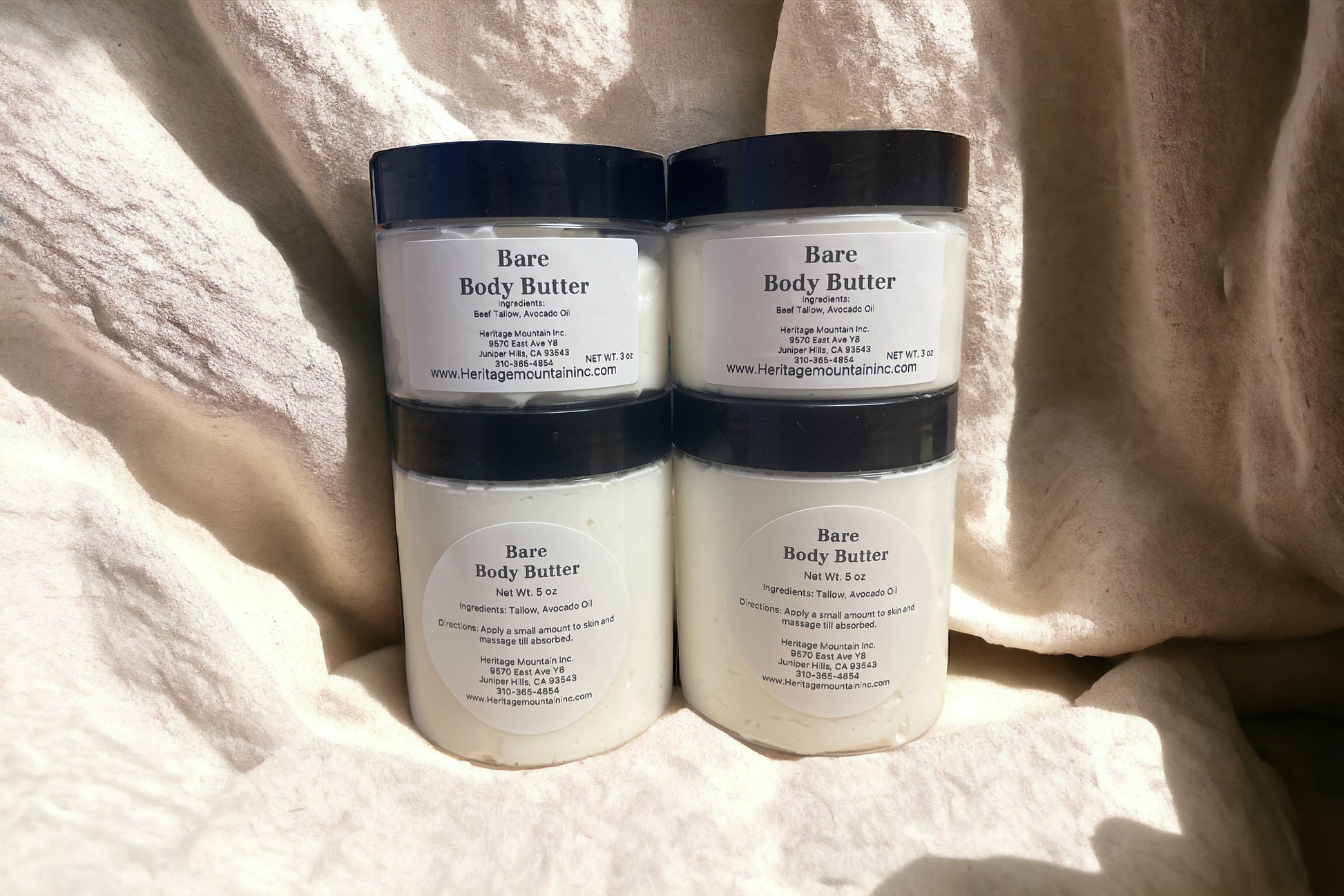 • Bare: Our white unscented body butter, nothing but our oils whipped to perfection.