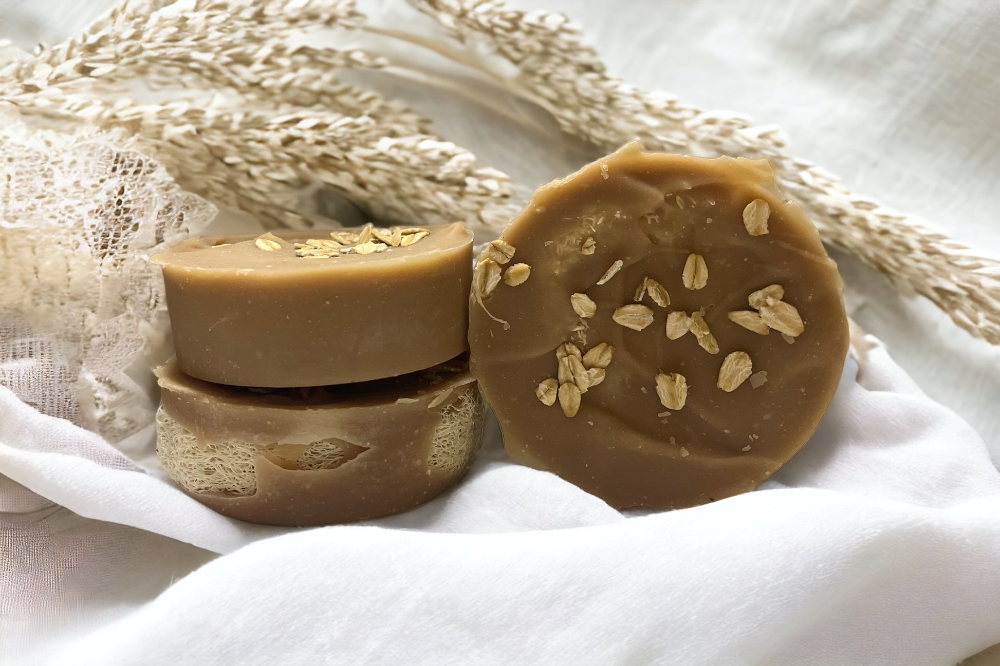 Our warm and sweet honey fields bar with a slice of loofah for extra scrub.