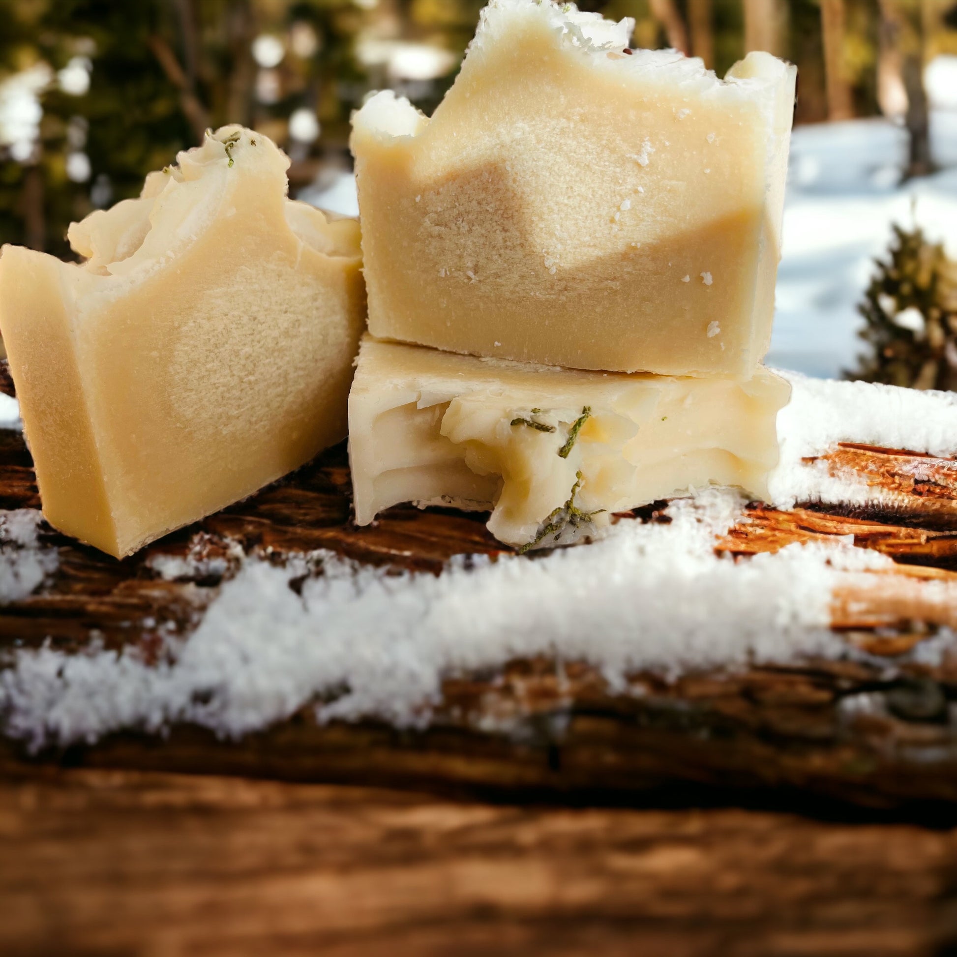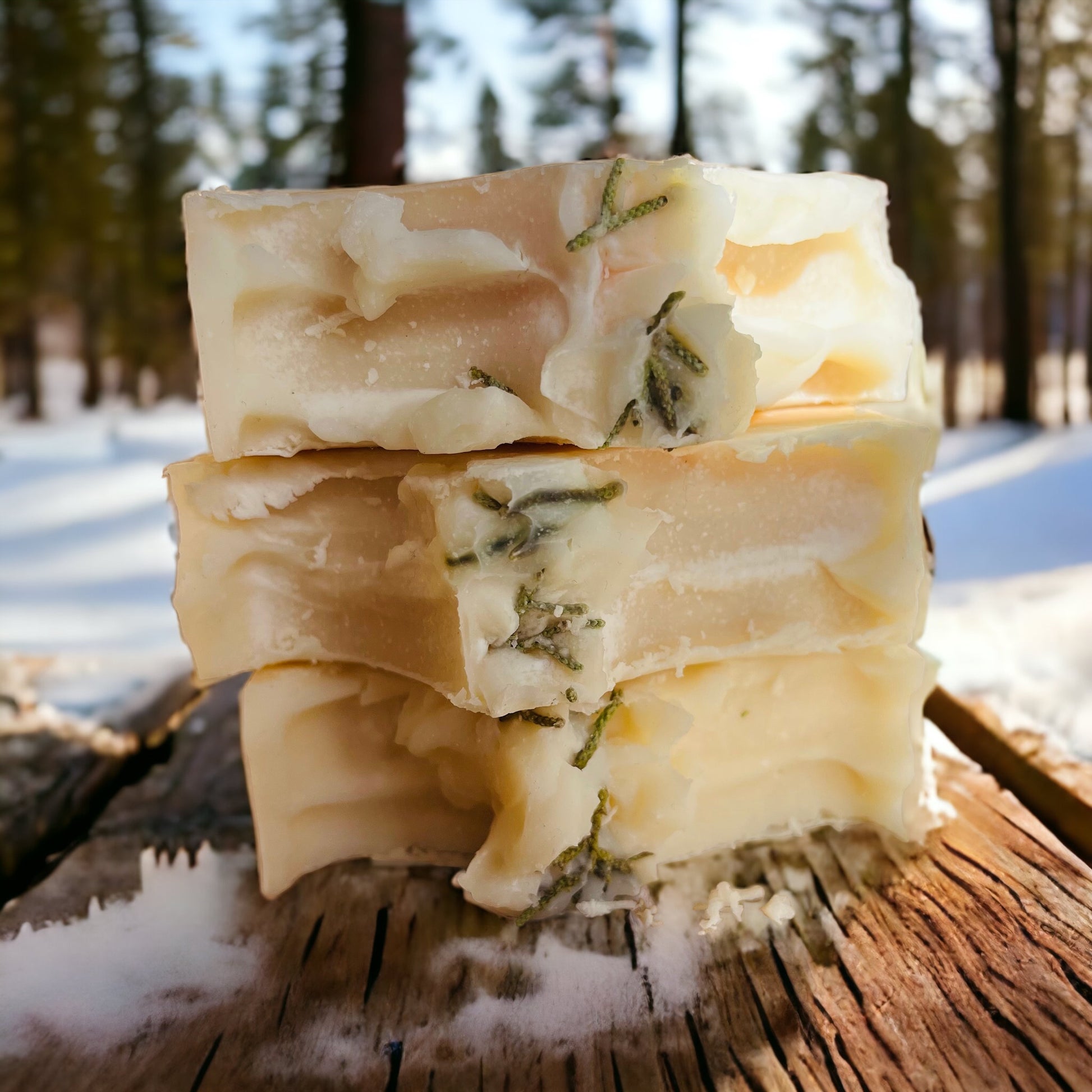 This soap is called "Juniper Snow" to evoke the feeling of a snowy winter landscape, with the sharp and invigorating scent of juniper berries.