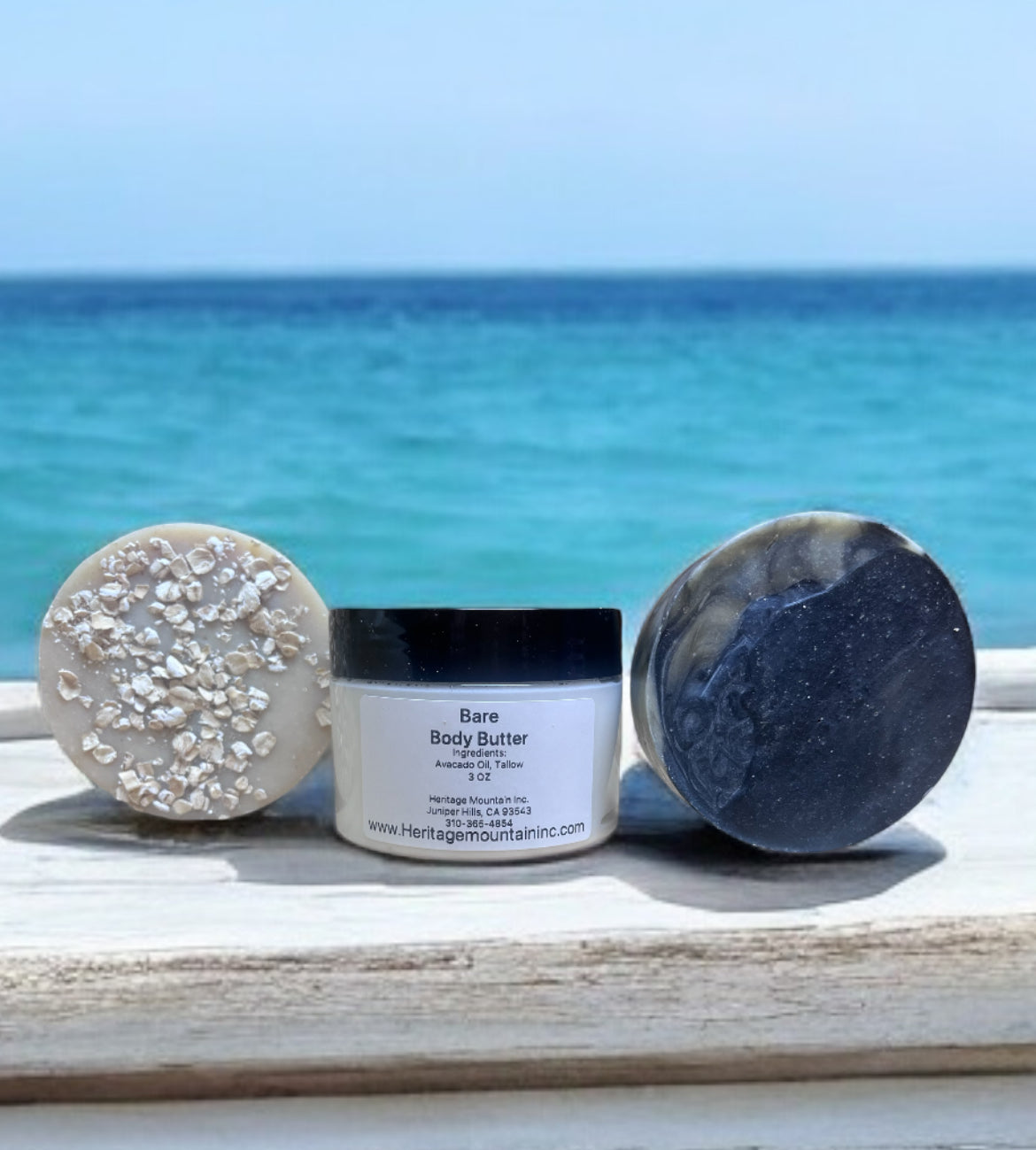 Our TLC Bundle includes three powerhouse products designed for sensitive skin: the Unscented Soothing Bar with goat milk and colloidal oats for calming relief, the Unscented Goat Milk Soap with activated charcoal for a gentle detox, and our luxurious Unscented Body Butter for deep, long-lasting hydration.